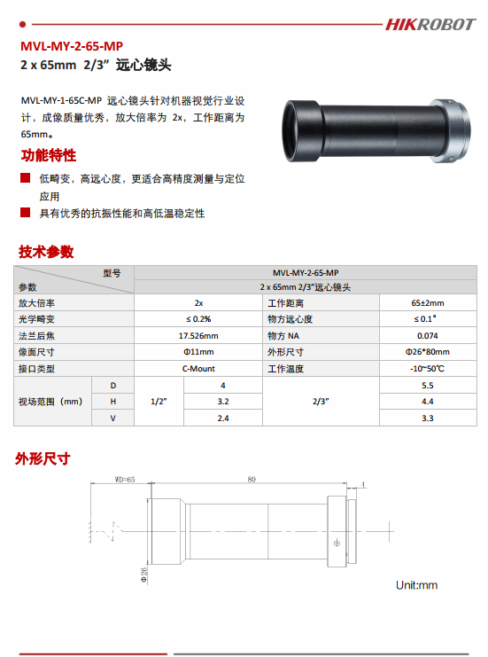 · 低畸变,高远心度,更适合高精度测量与定位应用